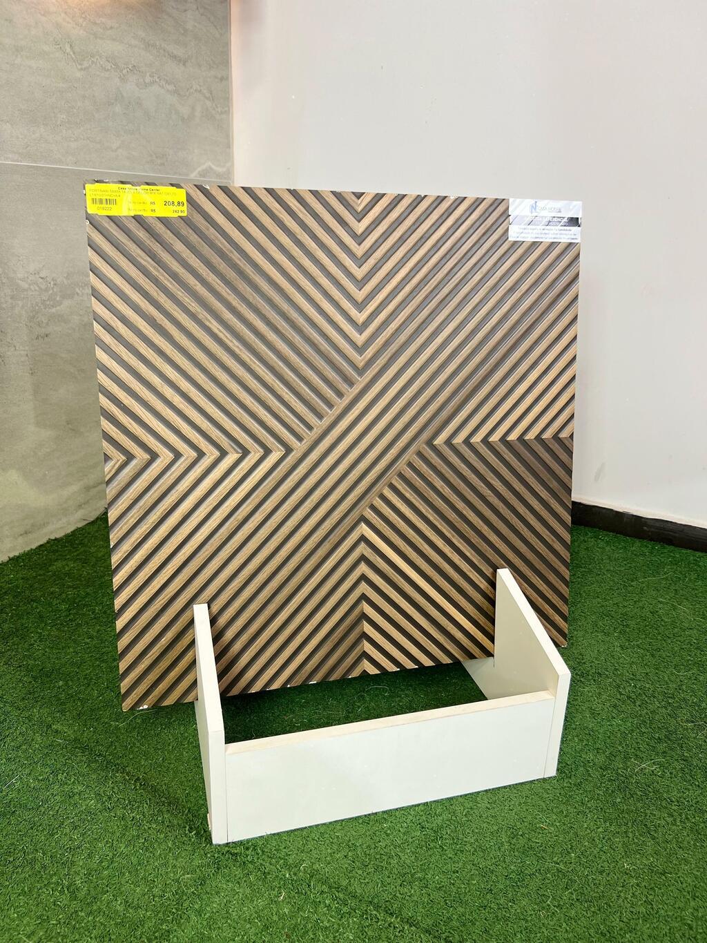 ✔ Estilo decorativo: combina texturas de madeira e formas geométricas